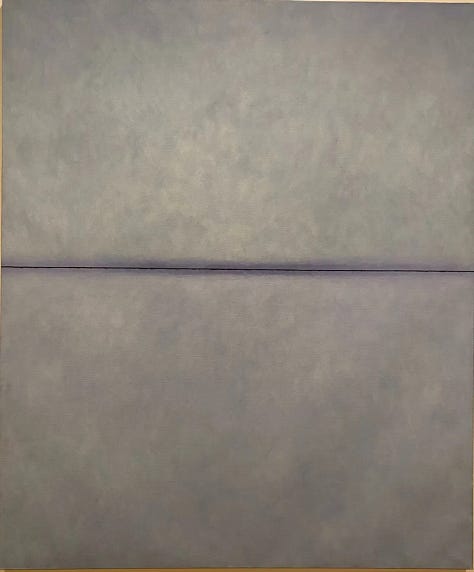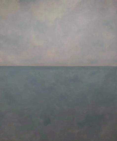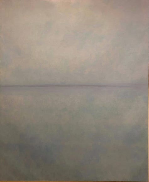 In a more meditative style, Robert Clicque paints simple horizons of sea and sky, opening a contemplative space.
