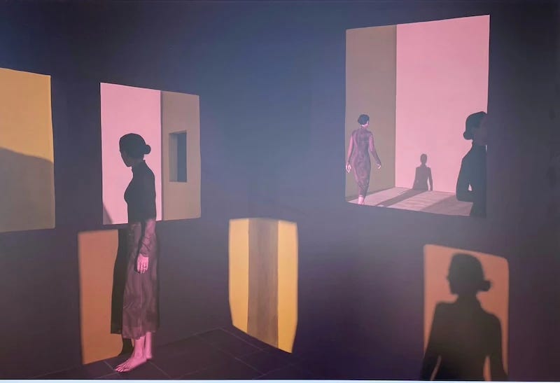 Already on the promenade, Frieke Janssens’ work catches the eye. You might remember her Rendez-vous, a reinterpretation of Botticelli’s Venus featured in the Color Challenge #12. Here, her work unfolds through a simple setup – portholes and large panels – inviting discovery.