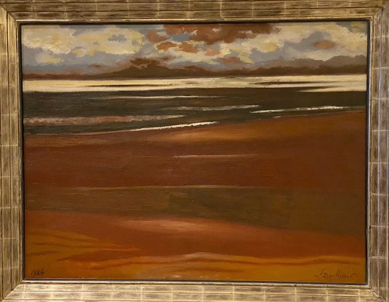This small exhibition, reduced to the left wing of the gallery, filled me completely. I never tire of Spilliaert’s seascapes. I especially enjoyed this one, with warm sandy tones under a bright sky.