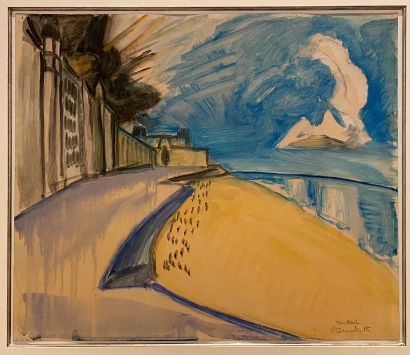 What a surprise to discover there a watercolor by Erich Heckel, German expressionist and founding member of Die Brücke. An eternal Ostend, again on the promenade near the Thermal Baths.